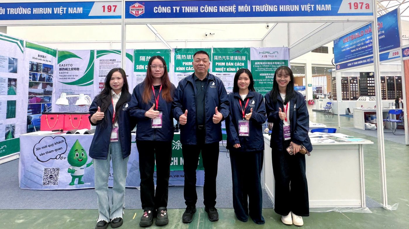 Từ 12-15/11/2025, tại triển lãm Vietbuild 2025 lần IV, các doanh nghiệp, nhà sản xuất và nhà phân phối đã có cơ hội trao đổi trực tiếp, ký kết hợp tác và giới thiệu sản phẩm mới trong các lĩnh vực xây dựng, vật liệu, thiết bị công nghiệp, nội – ngoại thất và vận tải. Công ty TNHH Công Nghệ Môi Trường HIRUN VIỆT NAM đã mang đến dòng sản phẩm cách nhiệt độc quyền Easyto tại Việt Nam, bao gồm: Sơn cách nhiệt Easyto Phim cách nhiệt kiến trúc Easyto Phim cách nhiệt ô tô Easyto Sàn tăng...